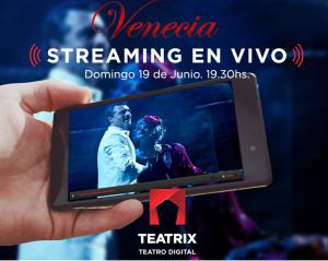 En esta primera oportunidad se podrá disfrutar de nada menos que de "Venecia", la obra argentina más representada en el mundo en los últimos 20 años. La aclamada obra de Jorge Accame, bajo la dirección de Helena Tritek y un elenco de excelentes actores, se podrá ver el domingo 19 de junio a las 19.30 ARG / 16:30 COSTA RICA